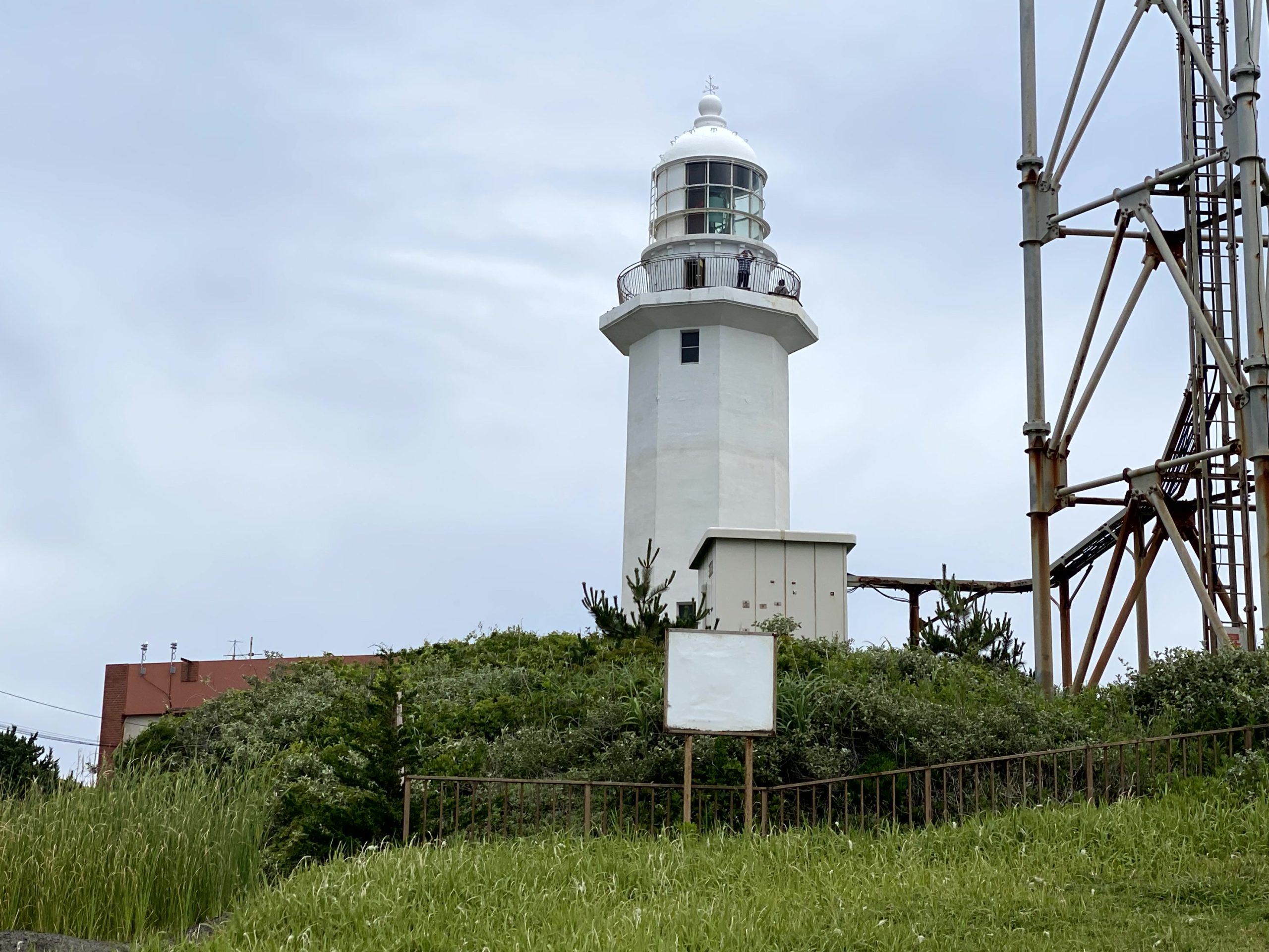 観音埼から海岸沿いに登っていくと、視界が開け、 白亜の八角形の灯台がそびえ、 眼下に東京湾と太平洋が飛び込んできます。参観灯台(6月18日火曜日は雨のため閉館で参観できなかった)灯台50選